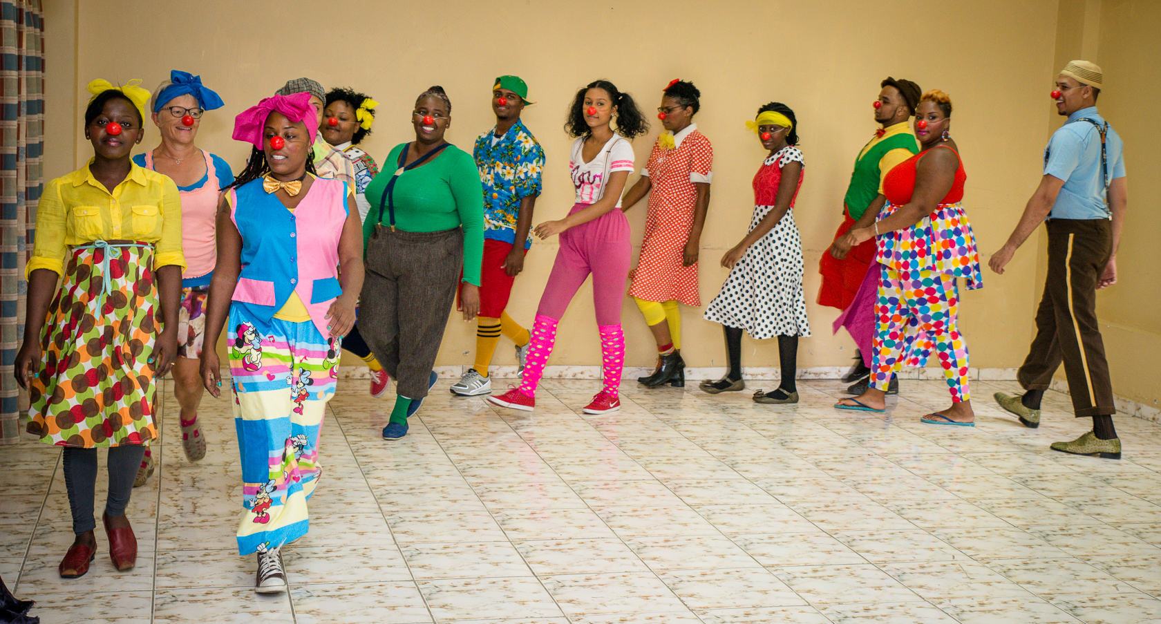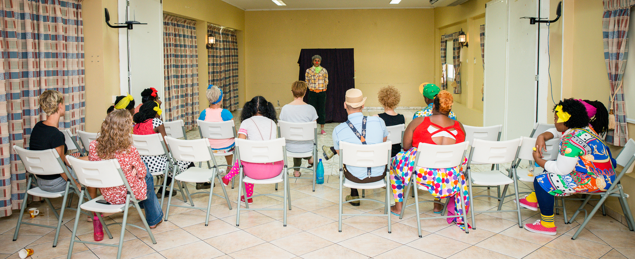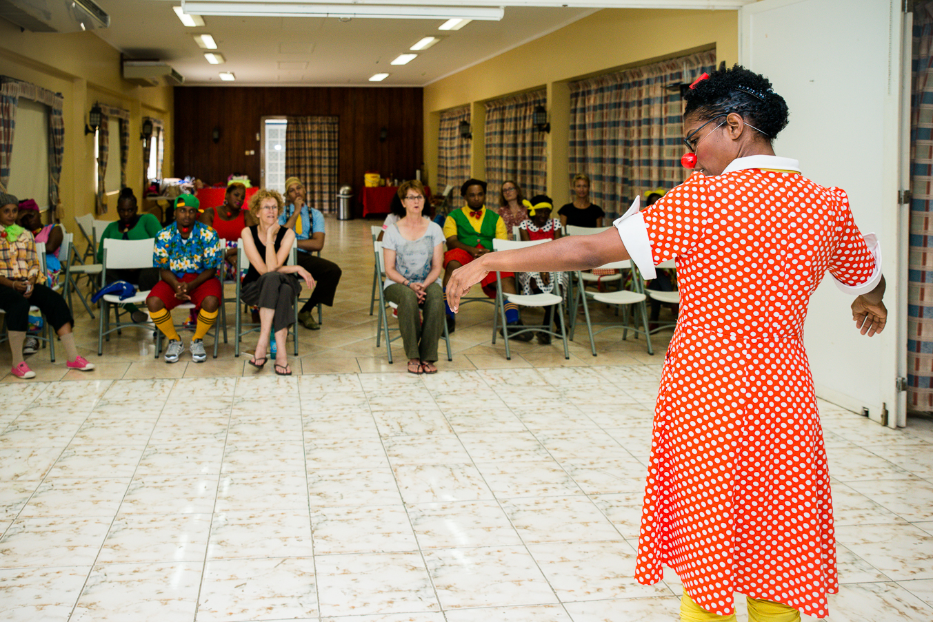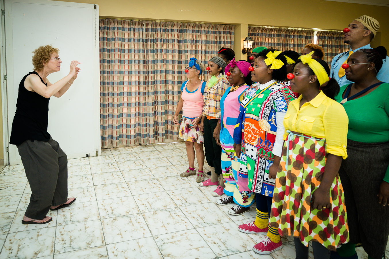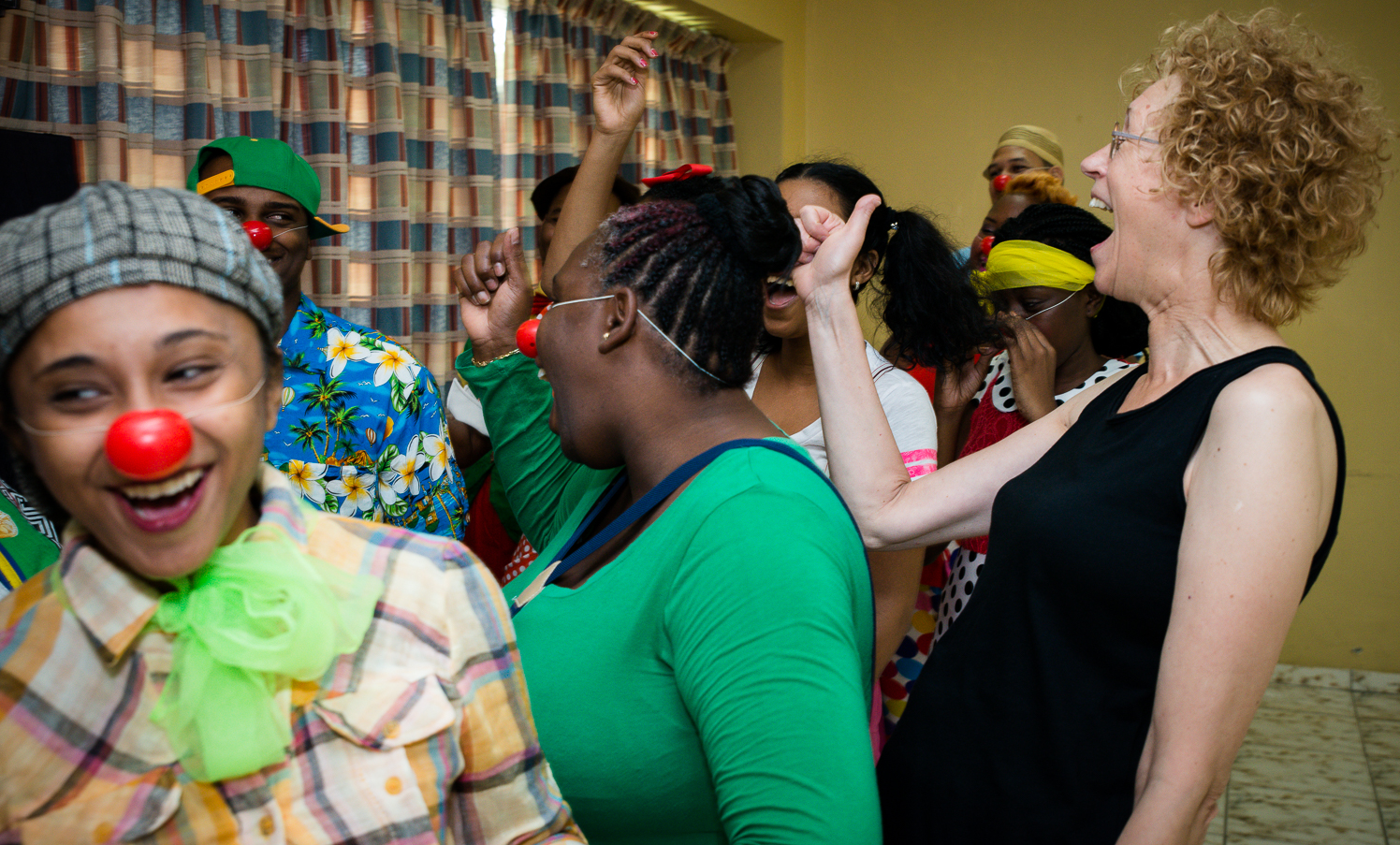 CliniClowns Curacao, The essence of their work is the meeting between our professionally trained CliniClowns and sick and handicapped children. By means of wonder and imagination, the CliniClown provides distraction and pleasure. This makes the children feel more positive and relaxed and they forget for a moment that they are sick and in pain. In this training the new clowns are getting trained to become a professional cliniclown. After creating this photo reportage I realized how many beautiful things the new cliniclowns are learning from this amazing training. Everytime that I am invited to create a photo reportagefor cliniclowns I see how important this foundation is for the sick and handicapt children.